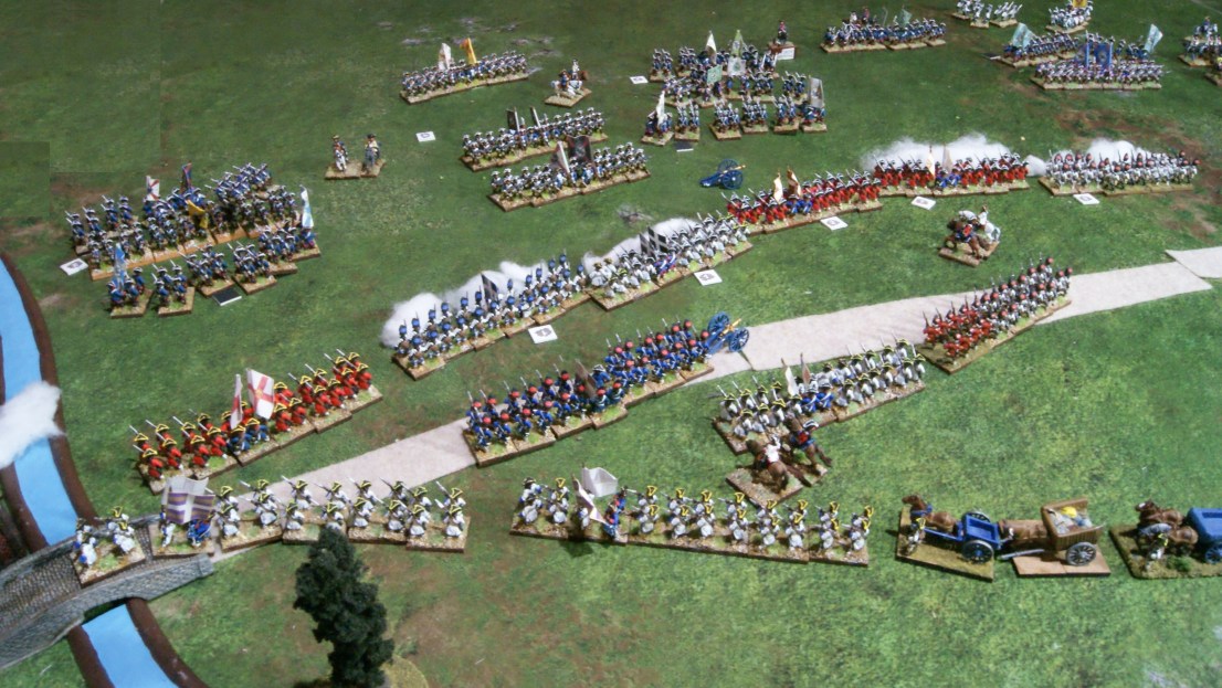 The two center French brigades take stage center as they advance on the Alliance position. In the rear the French artillery has opened up.